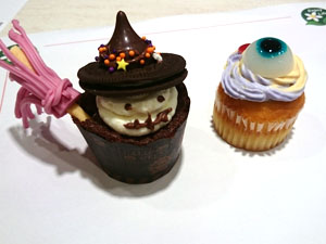 昨日は近所のマミーマートでハロウィンのカップケーキを作ってきました。