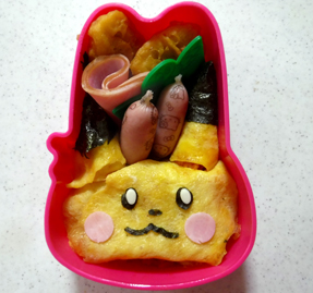 もう給食が終わり~なのでお弁当です。キャラ弁がいいというので作ってみましたが、仕事前に作るのは疲れる。そしてキャラ弁は時間がかかる。頑張った割にそんなにうまくできない。がっかりです。ケッチャプライスが好きなので、ケチャップライスです。赤いキャラクターがないですよね・・・なのでピカチューです。子供に学童でキャラ弁居た?と聞いたら居なかった?みたい・・・やっぱり働くママさんにはキャラ弁は厳しいですね。子供はまた作ってというし・・・早く給食!!!が欲しい。でももう春休み・・・突入前ですね・・・学童が嫌にならないように、ママ頑張る。一応頑張ってキャラ弁作る日々なのでした・・・・。