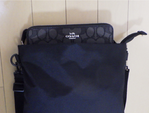 財布だけ持ち歩きたいな~なんて時は中のものを取り出して、ショルダーベルトを取り付けて斜め掛けして財布だけ持ち歩けるので便利です。