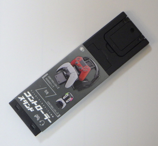 立てるとこんな感じでゲームコントローラーを上手に収納できるのです。