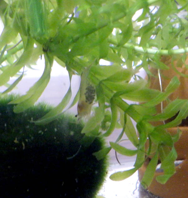 一度目のミナミヌマエビの卵は生まれず・・・そしてその後死んでしまったミナミヌマエビですが、また卵を付けないかな~とみているとやった~