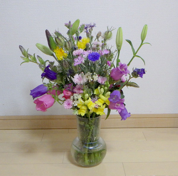 鎌ヶ谷で大きな花瓶をもらったし、母の日のお花も枯れてしまったのでお花があるといいかな~と思ったからです。
