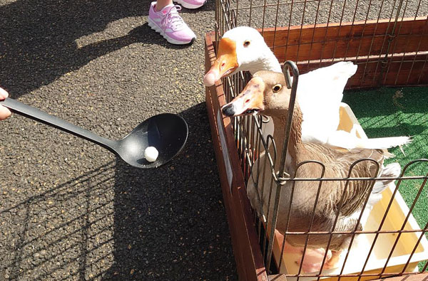 BIG HOP(ビッグホップ)あひるに餌をあげる