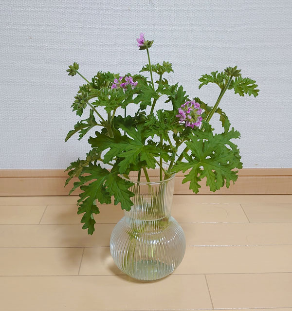 蚊が来ないとうし、花が咲いているので花瓶に入れて飾ってみました。