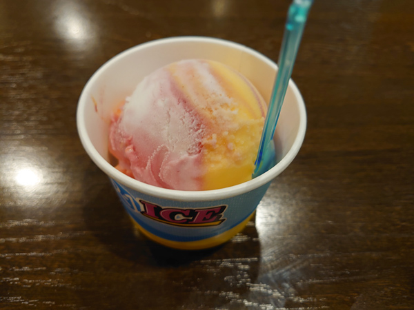 プール後は温泉で疲れを取り、そのごアイスを食べる。