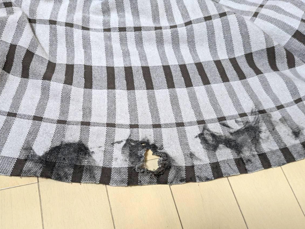 写真は逆回転してスカートの巻き取りを取ることがはできましたが、スカートに大きな穴が開いてしまいました。
