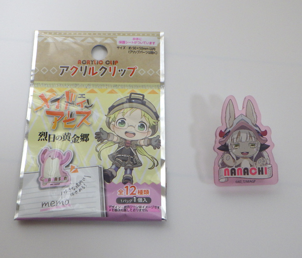 ダイソー アクリルクリップ メイドインアビス購入 公開済み: 2025年1月25日更新: 2025年1月25日作成者: bibibbb30@カテゴリー: 100均 ダイソーで見つけたので購入しました。 クリップなら使い道ありますからそれに100円だし!!! ってことで購入しました。 でたのはナナチ!!! やった!!ナナチなら当たりでしょう。 良かった~ 関連記事 カーテンを自動にするときに使って100円ショップ商品 SwitchBotのカーテンを使う時にカーテンの開き方が片方だけしないともう一台SwitchBotのカーテンを購入しないといけません。我が家では両開きカーテンです。お金があれば2台購入した方が見た目もいいですけど・・・さ […] 公開済み: 2024年3月25日更新: 2024年3月26日作成者: bibibbb30@カテゴリー: 100均 お風呂の床にはシールはがし お風呂の床が大分汚くなってきました。カビキラーでも取れません。長年の汚れが溝に入って取れないです。ブラシでも全然取れず、割りばしなどの固い細い棒では取れます。しかし、そんなことをしていると疲れます。疲れてへとへとです。そ […] 公開済み: 2020年7月8日更新: 2020年7月8日作成者: bibibbb30@カテゴリー: 100均タグ: お風呂の床の黄ばみ, シールはがし セリア タオルバーにかけられる小物ポケットでコード収納 蓋がないタイプでり下げが可能なものを探していたので、タオルバーにかけられる小物ポケットはぴったりです。これを使って小物を分類。タグは前回作ったものにシールを貼ったものも使用したので、見やすいくなりました。高さも調節できる […] 公開済み: 2022年10月25日更新: 2022年10月25日作成者: bibibbb30@カテゴリー: 100均タグ: タオルバーにかけられる小物ポケット この投稿へのコメント コメントはありません。 コメントを残す コメントをキャンセルメールアドレスが公開されることはありません。 ※ が付いている欄は必須項目ですコメント ※ 名前 ※ メール ※ サイト 次回のコメントで使用するためブラウザーに自分の名前、メールアドレス、サイトを保存する。 上に表示された文字を入力してください。 Δ この投稿へのトラックバック トラックバックはありません。 トラックバック URL