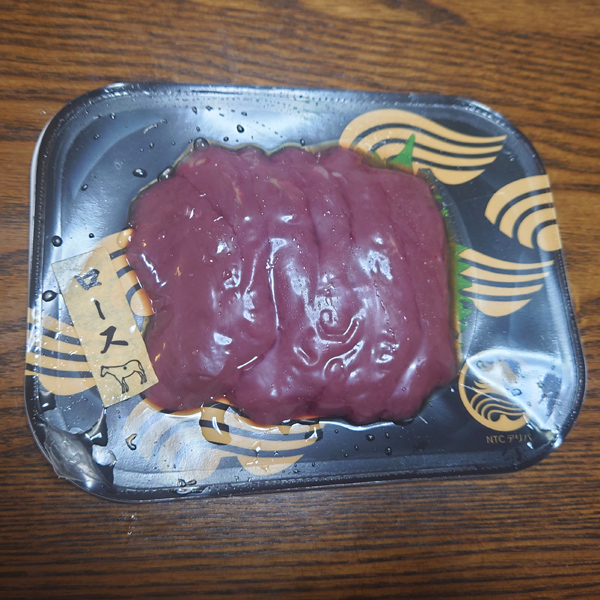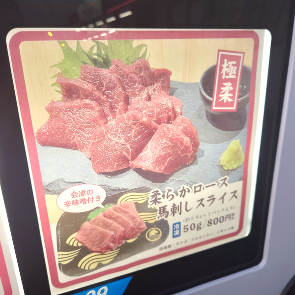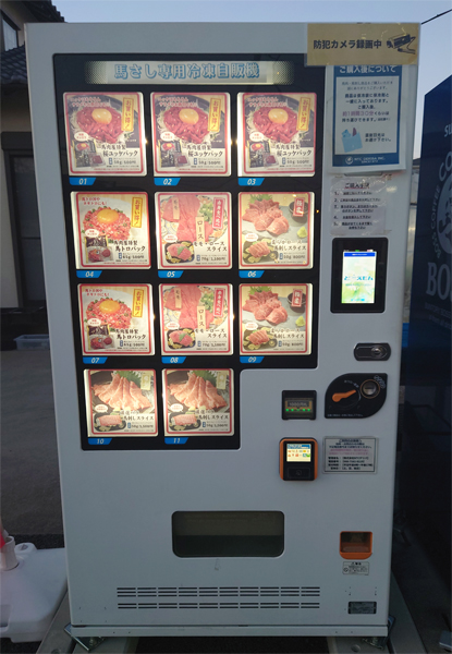 馬刺しの自動販売機があり、気になったので購入してみました。