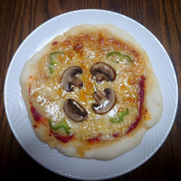 ピザのサイズが小さかったので、6個マッシュルームは置けませんでした。