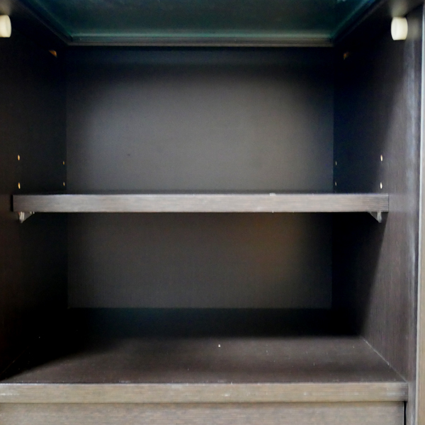 収納している棚なのですが、ガラスは素敵は素敵なのですが見えすぎて困る。