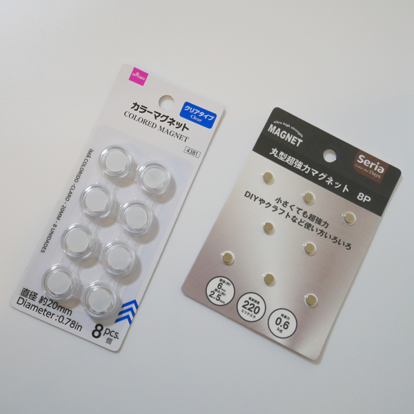 カラーマグネットと丸型強力マグネット8Pを使用。