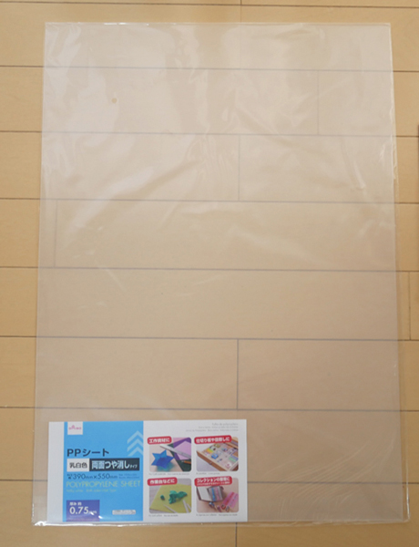 PPシート乳白色両面つや消しの厚み。そして大きさがもっと同じものを使用していたらもっと早く手軽にできそうでしたが、間違って厚みがあるものを購入したのでかなり骨が折れました。