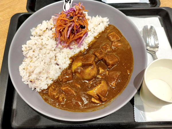 今回食べたのはスパイシーカレーとパンとココアを購入。