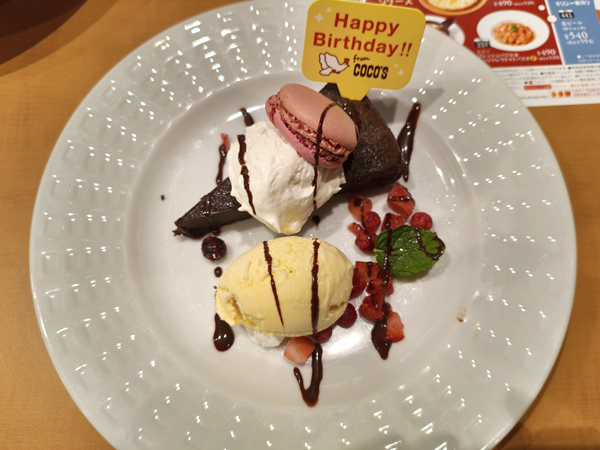 ココス誕生日プレートゲット 公開済み: 2025年12月29日更新: 2025年12月29日作成者: bibibbb30@カテゴリー: 雑談 誕生日プレートですが家族を設定して置いたら家族の誕生日プレートも無料で貰えました。 子供が12月生まれなのでこちらのプレートを無料でゲットできました。 ココスの誕生日プレートはこれで無料って思うほど豪華なので嬉しいです。 関連記事 16 不二家 111周年ペコちゃんオリジナルメダルを貰えず 11月16日はぺこちゃんの111回目の誕生日だそうです。それを記念してメダルが貰えるというので貰おうかな~って思っていました。駅前の不二家が閉店してしまったので、お隣流山でもらうことにしました。10時前に行こうかなと思い […] 公開済み: 2021年11月16日更新: 2021年11月16日作成者: bibibbb30@カテゴリー: 雑談タグ: 111周年ペコちゃんオリジナルメダル, 不二家 最近ウーパールーパーがずっと泳いでいます 夏などはずっと寝てばかりのウーパールーパーでしたが・・・最近ずっとぼこぼこの上を泳ぎ、その後で別の場所で浮くということをずっと繰り返しています。 可愛いですけど! 大丈夫かな~思うほどずっと同じことをしています。 どうし […] 公開済み: 2022年12月28日更新: 2022年12月28日作成者: bibibbb30@カテゴリー: 雑談タグ: ウーパールーパー ライフでペーパークラフトを貰う ライフでペーパークラフトがありましたので、貰ってきました。ララピーが可愛いですね。 公開済み: 2025年12月24日更新: 2025年12月25日作成者: bibibbb30@カテゴリー: 雑談 この投稿へのコメント コメントはありません。 コメントを残す コメントをキャンセルメールアドレスが公開されることはありません。 ※ が付いている欄は必須項目ですコメント ※ 名前 ※ メール ※ サイト 次回のコメントで使用するためブラウザーに自分の名前、メールアドレス、サイトを保存する。 上に表示された文字を入力してください。 Δ この投稿へのトラックバック トラックバックはありません。 トラックバック URL