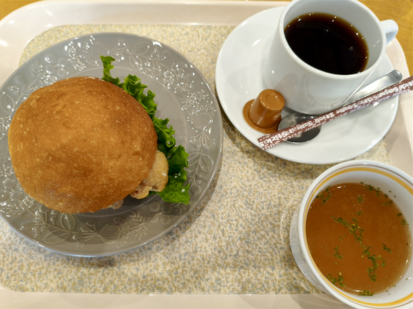 ハンバーガーとスープとホットコーヒー(選べるドリンク)にしました。