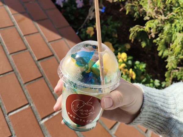 やおりんcafe 横浜限定の青いりんご飴。